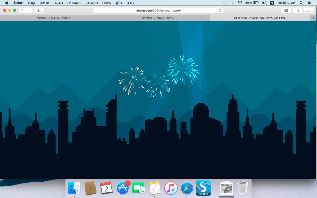מי הייתה מאמינה??? בהנחה שכל אישה היא עולם ומלואו זה אומר שכמעט 7,000 עולמות הציצו לרגע לעולם שלי לכבוד הוא לי! תודה לכל הקוראות והקוראים, העוקבות והעוקבים - HAPPY NEW YEAR ! יאללה 2015 שרק תמשיכי להפתיע לטובה 🙂 ותודה ל- WordPress.com על הדוח השנתי המקסים של שנת 2014 הנה תקציר: אולם האופרה בסידני יכול להכיל […]